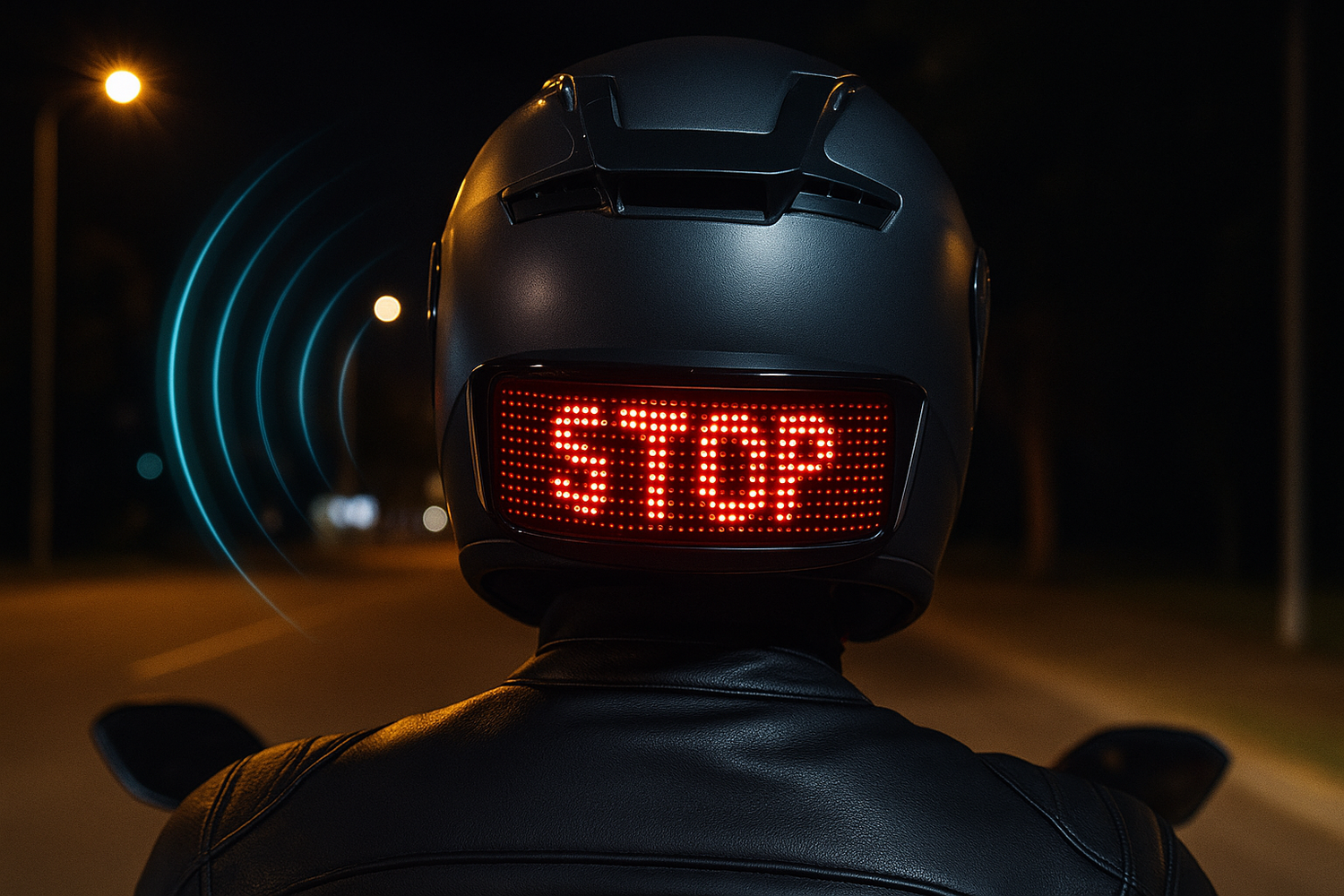 Our IMU-sensor detects deceleration and triggers a high-visibility STOP display in 0.2s. Unlike stock slotted tail lights, this unit sits at eye level to alert drivers behind you early.